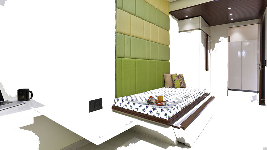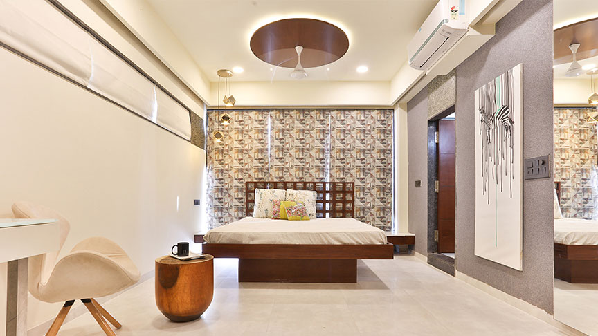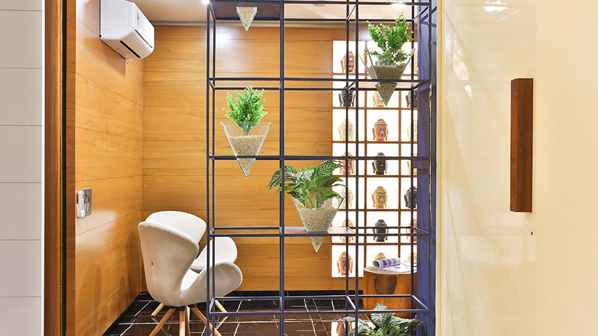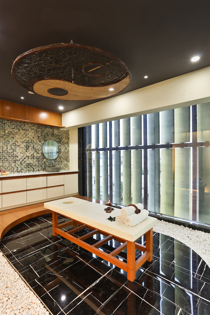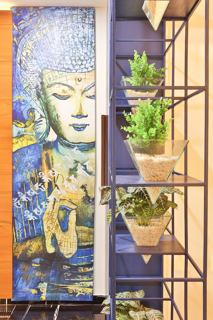 This spa mansion is very strategically planned and designed. We have made the best use of the available space and have delivered functionality to the significant areas. The ceilings of all the rooms are vibrant and treated differently in each room. We have given ample storage in all the rooms without compromising with design and functionality. All the spaces have relevant art installations to amplify the look and feel of the particular zone. We have used maximum shades of green to make all the spaces look connected.
