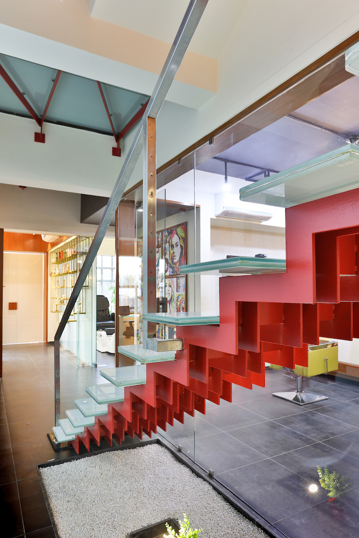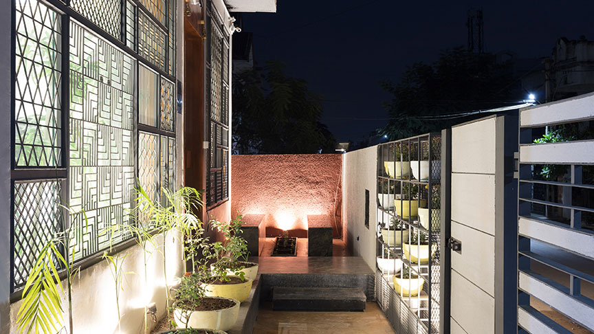 As the construction area is completely surrounded by residential area and commercial complex, privacy was a major concern. To resolve this issue, the outer side was mounted with window slits which would give them required seclusion from eye level and would also let them set it to an angle where it can let in natural sunlight.