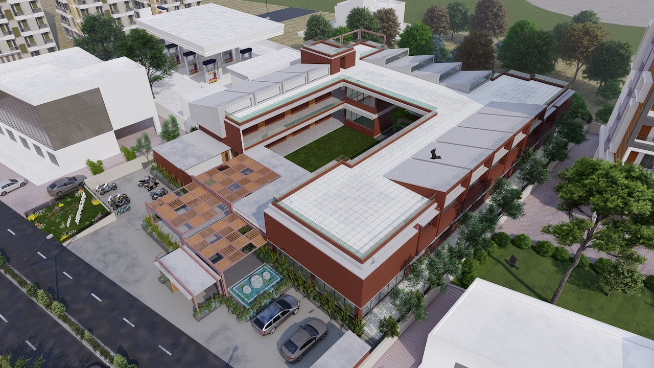 Our architecture firm was presented with a unique challenge - to design a preschool in a densely populated area surrounded by vacant plots and a petrol pump. We approached this project with a direction-responsive strategy, taking into account the orientation of the sun and the client's preference for basic Vastu principles.